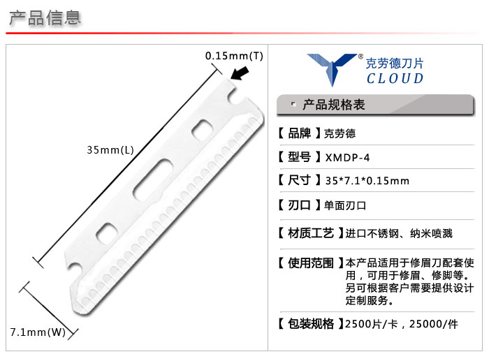 外貿(mào)出口、修眉刀廠家配套、化妝師、足浴修腳師專用刀片;廠家直銷,量大價(jià)優(yōu);刀片選用進(jìn)口不銹鋼材質(zhì),納米噴濺,10倍壽命更耐用;多種型號(hào)和包裝自由選擇,支持產(chǎn)品及包裝個(gè)性化定制;可用于修眉、剃須、刮毛、切割等。