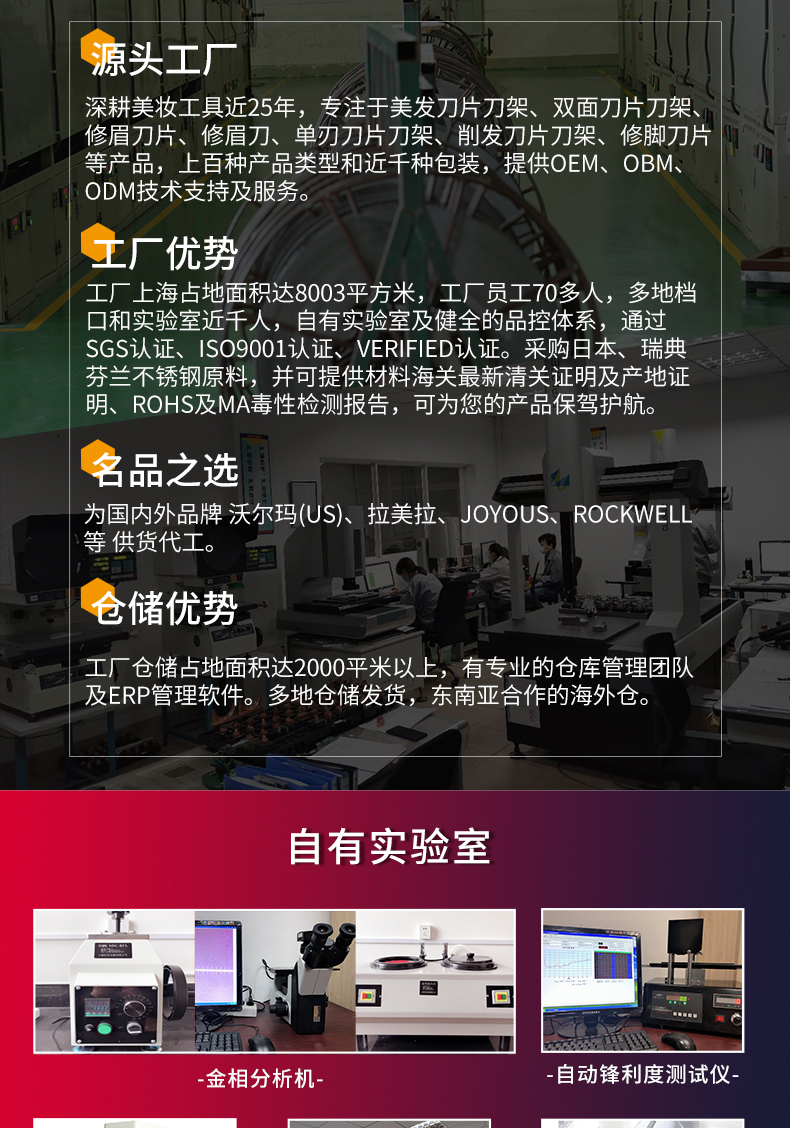 外貿(mào)出口、修眉刀廠家配套、化妝師、足浴修腳師專用刀片;廠家直銷,量大價優(yōu);刀片選用進口不銹鋼材質(zhì),納米噴濺,10倍壽命更耐用;多種型號和包裝自由選擇,支持產(chǎn)品及包裝個性化定制;可用于修眉、剃須、刮毛、切割等。